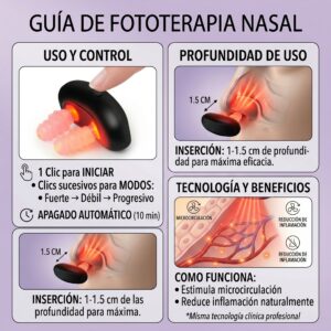 - ✅ Reduce la inflamación nasal — La luz roja estimula la circulación y reduce el edema